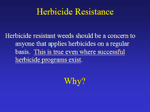 Herbicide Resistance<BR> <BR>Herbicide resistant weeds should be a concern to anyone that applies herbicides on a regular basis.  This is true even where successful herbicide programs exist. <BR> <BR>Why?<BR>