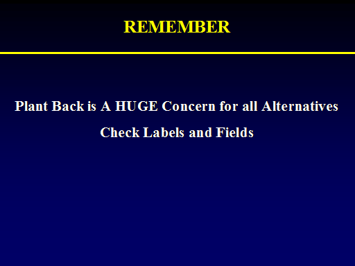 REMEMBER <BR>Plant Back is A HUGE Concern for all Alternatives <BR>Check Labels and Fields <BR>