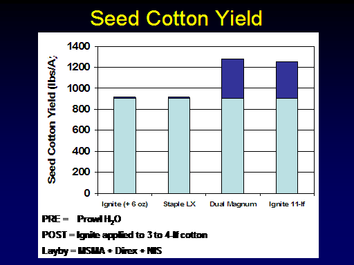 Seed Cotton Yield<BR>PRE = 	Prowl H2O  <BR>POST = Ignite applied to 3 to 4-lf cotton <BR>Layby = MSMA + Direx + NIS <BR>