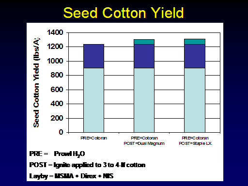 Seed Cotton Yield<BR>PRE = 	Prowl H2O  <BR>POST = Ignite applied to 3 to 4-lf cotton <BR>Layby = MSMA + Direx + NIS<BR>