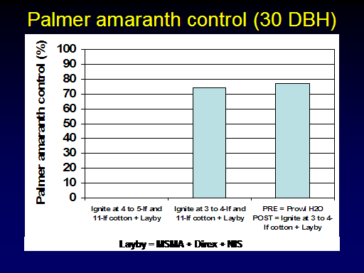 Palmer amaranth control (30 DBH)<BR>Layby = MSMA + Direx + NIS<BR>