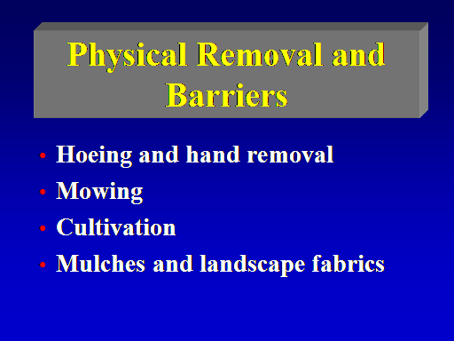 Physical Removal and Barriers<BR>Hoeing and hand removal