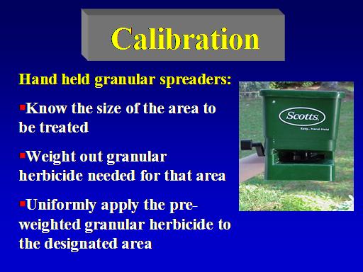 Calibration<BR>Hand held granular spreaders: