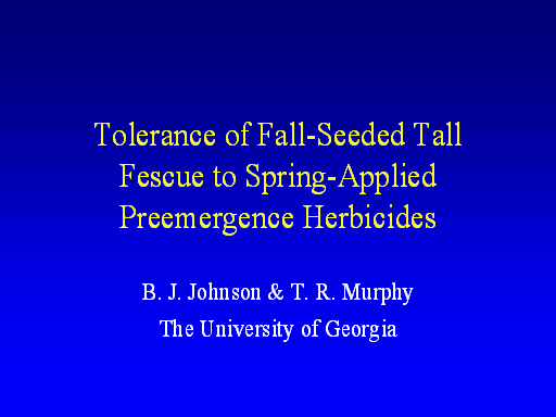 <H1>Tolerance of Fall-Seeded Tall Fescue to Spring-Applied Preemergence Herbicides</H1>
