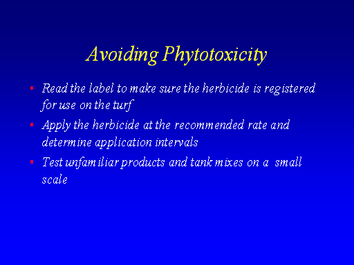 <LI><H2>Read the label to make sure the herbicide is registered for use on the turf