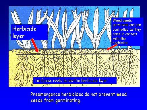 Preemergence herbicides do not prevent weed seeds from germinating.</UL></P>