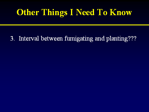 <BR>3.  Interval between fumigating and planting???<BR>Other Things I Need To Know<BR>