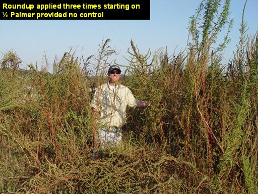 Roundup applied three times starting on ½ Palmer provided no control<BR>
