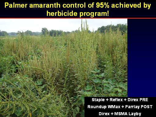 Staple + Reflex + Direx PRE <BR>Roundup WMax + Parrlay POST  <BR>Direx + MSMA Layby<BR>Palmer amaranth control of 95% achieved by herbicide program!<BR>