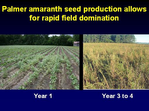 <BR> <BR> <BR> <BR> <BR> <BR> <BR> <BR>Palmer amaranth seed production allows for rapid field domination<BR>Year 1<BR>Year 3 to 4<BR>