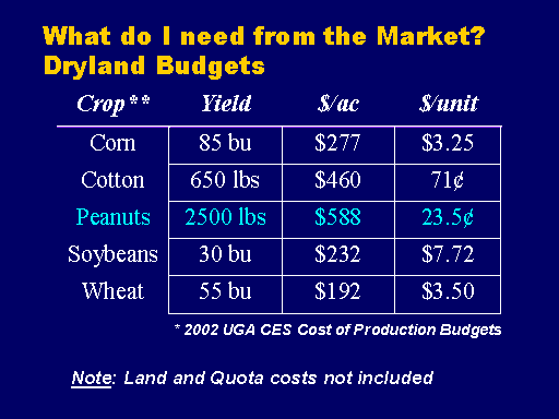 What do I need from the Market?Dryland Budgets<BR>* 2002 UGA CES Cost of Production Budgets<BR>Note: Land and Quota costs not included<BR>