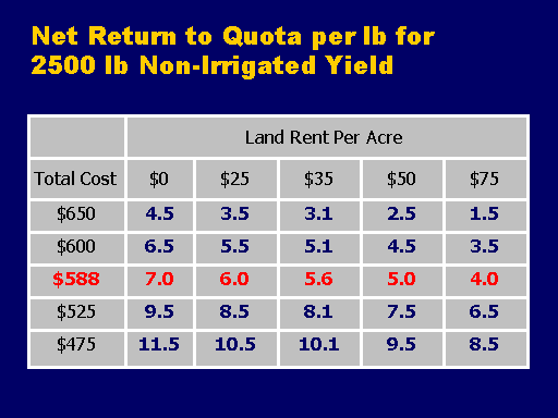 Net Return to Quota per lb for  2500 lb Non-Irrigated Yield <BR>