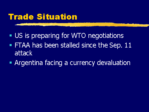 <BR>FTAA has been stalled since the Sep. 11 attack