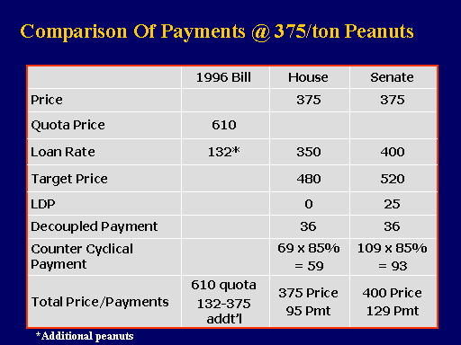 Comparison Of Payments @ 375/ton Peanuts<BR>*Additional peanuts<BR>