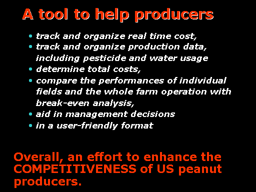<BR>in a user-friendly format<BR>Overall, an effort to enhance the COMPETITIVENESS of US peanut producers.<BR>