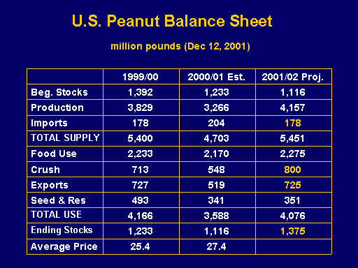 U.S. Peanut Balance Sheet   million pounds (Dec 12, 2001)<BR>