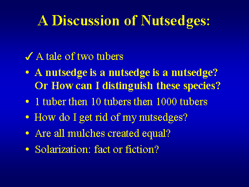 A Discussion of Nutsedges:<BR>A tale of two tubers