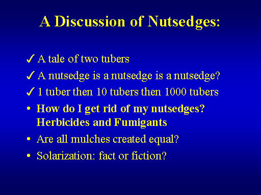 <BR>How do I get rid of my nutsedges? Herbicides and Fumigants