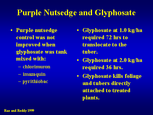 <BR>pyrithiobac<BR>Rao and Reddy 1999<BR>Glyphosate at 1.0 kg/ha required 72 hrs to translocate to the tuber.