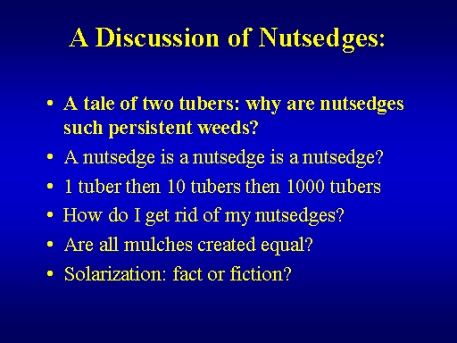 A Discussion of Nutsedges:<BR>A tale of two tubers: why are nutsedges such persistent weeds?