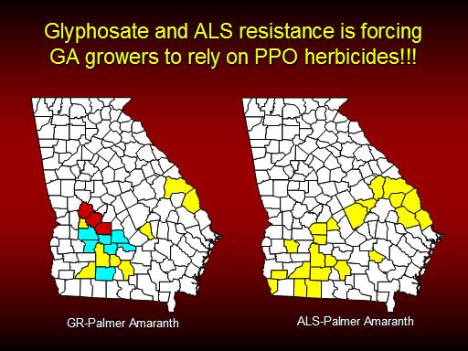 Glyphosate and ALS resistance is forcing GA growers to rely on PPO herbicides!!!<BR>GR-Palmer Amaranth<BR>ALS-Palmer Amaranth<BR>