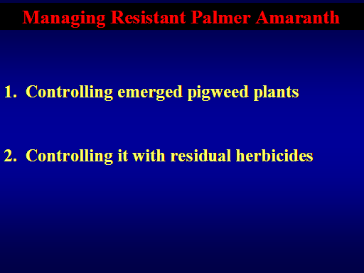 Managing Resistant Palmer Amaranth<BR>1.  Controlling emerged pigweed plants <BR> <BR>2.  Controlling it with residual herbicides<BR>