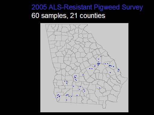 2005 ALS-Resistant Pigweed Survey 60 samples, 21 counties<BR>