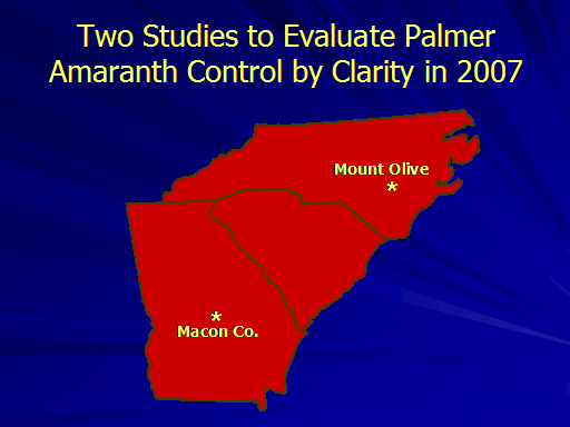 Two Studies to Evaluate Palmer Amaranth Control by Clarity in 2007<BR>Mount Olive<BR>Macon Co.<BR>*<BR>*<BR>