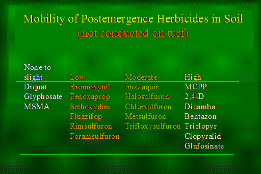 Mobility of Postemergence Herbicides in Soil (not conducted on turf)<BR>
