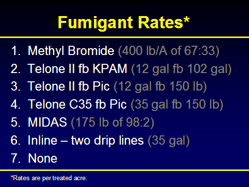 Fumigant Rates*<BR>1.  Methyl Bromide (400 lb/A of 67:33)