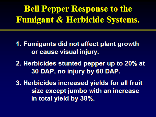 Bell Pepper Response to the Fumigant & Herbicide Systems.<BR> Fumigants did not affect plant growth 	or cause visual injury.