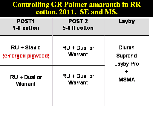 Controlling GR Palmer amaranth in RR cotton. 2011.  SE and MS.<BR>
