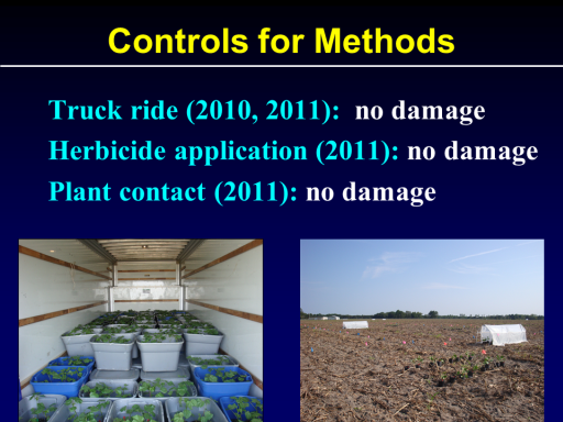 Controls for Methods<BR>Truck ride (2010, 2011):  no damage <BR>Herbicide application (2011): no damage <BR>Plant contact (2011): no damage <BR> <BR>