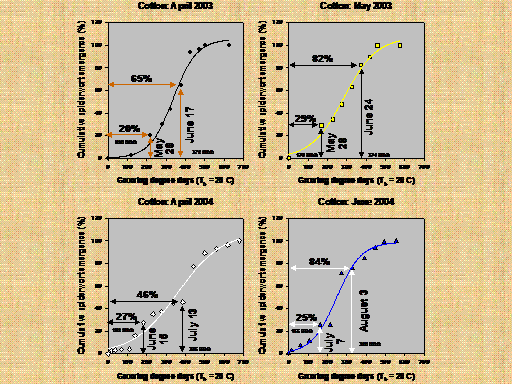 20%<BR>65%<BR>June 17<BR>May <BR>28<BR>29%<BR>82%<BR>June 24<BR>May <BR>28<BR>27%<BR>46%<BR>July 13<BR>June <BR>15<BR>25%<BR>84%<BR>August 3<BR>July  <BR>7<BR>170 GDD<BR>374 GDD<BR>378 GDD<BR>220 GDD<BR>386 GDD<BR>182 GDD<BR>166 GDD<BR>390 GDD<BR>
