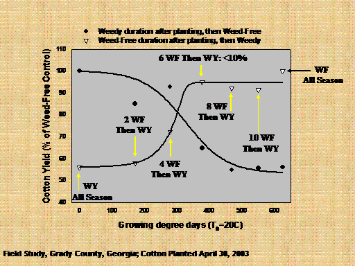 Field Study, Grady County, Georgia; Cotton Planted April 30, 2003<BR>WY  <BR>All Season<BR>2 WF <BR>Then WY<BR>4 WF <BR>Then WY<BR>8 WF <BR>Then WY<BR>10 WF <BR>Then WY<BR>WF  <BR>All Season<BR>6 WF Then WY: <10%<BR>