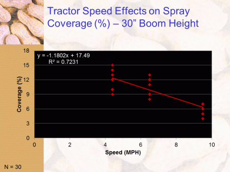 Tractor Speed Effects on Spray Coverage (%) – 30” Boom Height<BR>N = 30<BR>