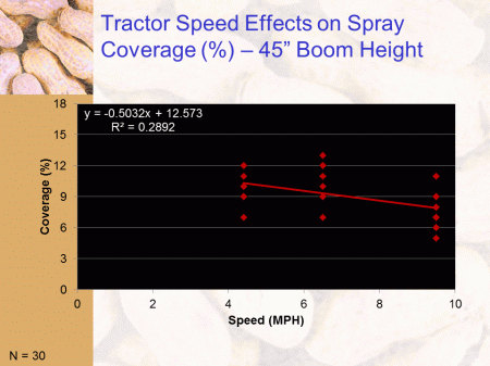 Tractor Speed Effects on Spray Coverage (%) – 45” Boom Height<BR>N = 30<BR>