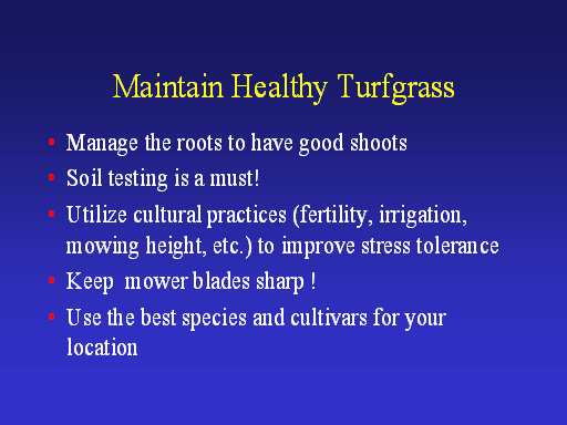 <LI><H2>Utilize cultural practices (fertility, irrigation, mowing height, etc.) to improve stress tolerance