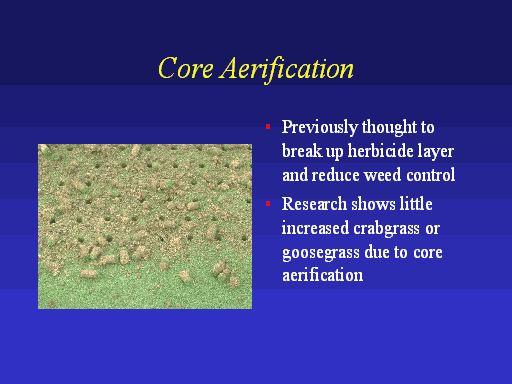 <LI><H2>Research shows little increased crabgrass or goosegrass due to core aerification</H2>
