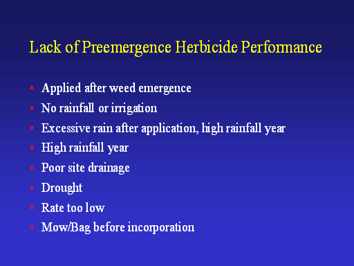 <H1>Lack of Preemergence Herbicide Performance</H1>