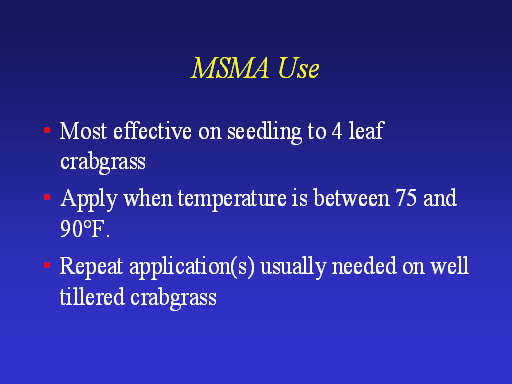 <LI><H2>Repeat application(s) usually needed on well tillered crabgrass</H2>