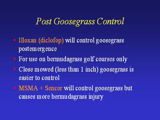 <LI><H2>MSMA + Sencor will control goosegrass but causes more bermudagrass injury</H2>