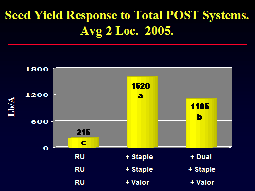 Seed Yield Response to Total POST Systems.  Avg 2 Loc.  2005.  <BR>