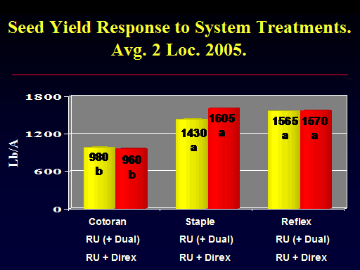 Seed Yield Response to System Treatments.   Avg. 2 Loc. 2005.  <BR>