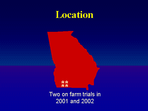 *<BR>Location<BR>Two on farm trials in 2001 and 2002<BR>*<BR>*<BR>*<BR>