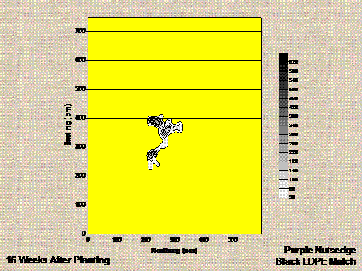 16 Weeks After Planting<BR>Purple Nutsedge <BR>Black LDPE Mulch<BR>