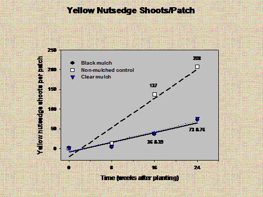 Yellow Nutsedge Shoots/Patch<BR>208<BR>73 & 76<BR>36 & 39<BR>137<BR>
