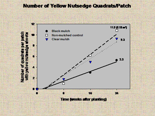 Number of Yellow Nutsedge Quadrats/Patch<BR>11.0 (0.18 m2)<BR>9.3<BR>5.3<BR>