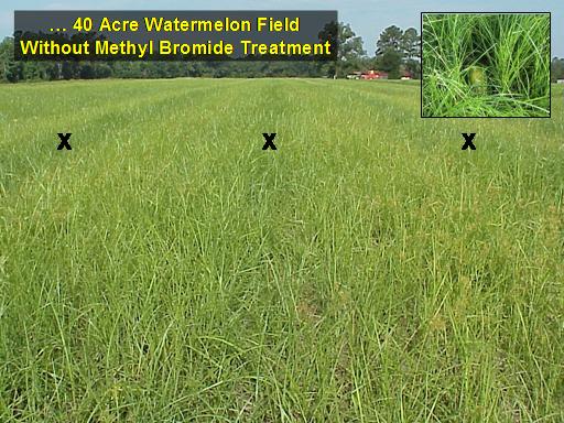 X<BR>X<BR>X<BR>… 40 Acre Watermelon Field <BR>Without Methyl Bromide Treatment<BR>