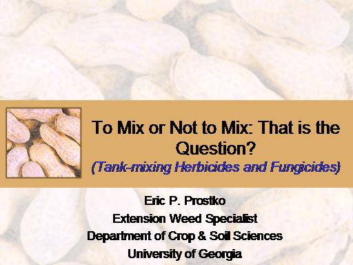 To Mix or Not to Mix: That is the Question? (Tank-mixing Herbicides and Fungicides)<BR>Eric P. Prostko <BR>Extension Weed Specialist <BR>Department of Crop & Soil Sciences <BR>University of Georgia<BR>